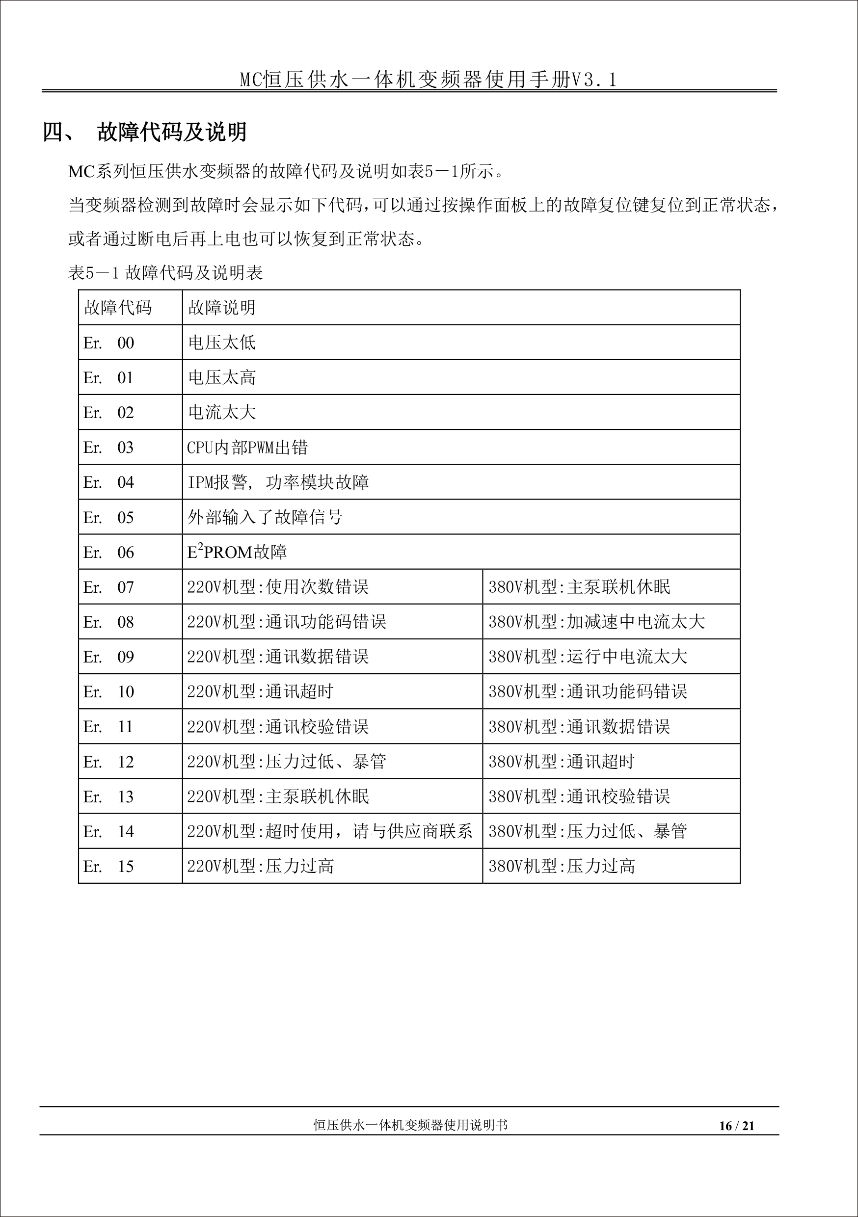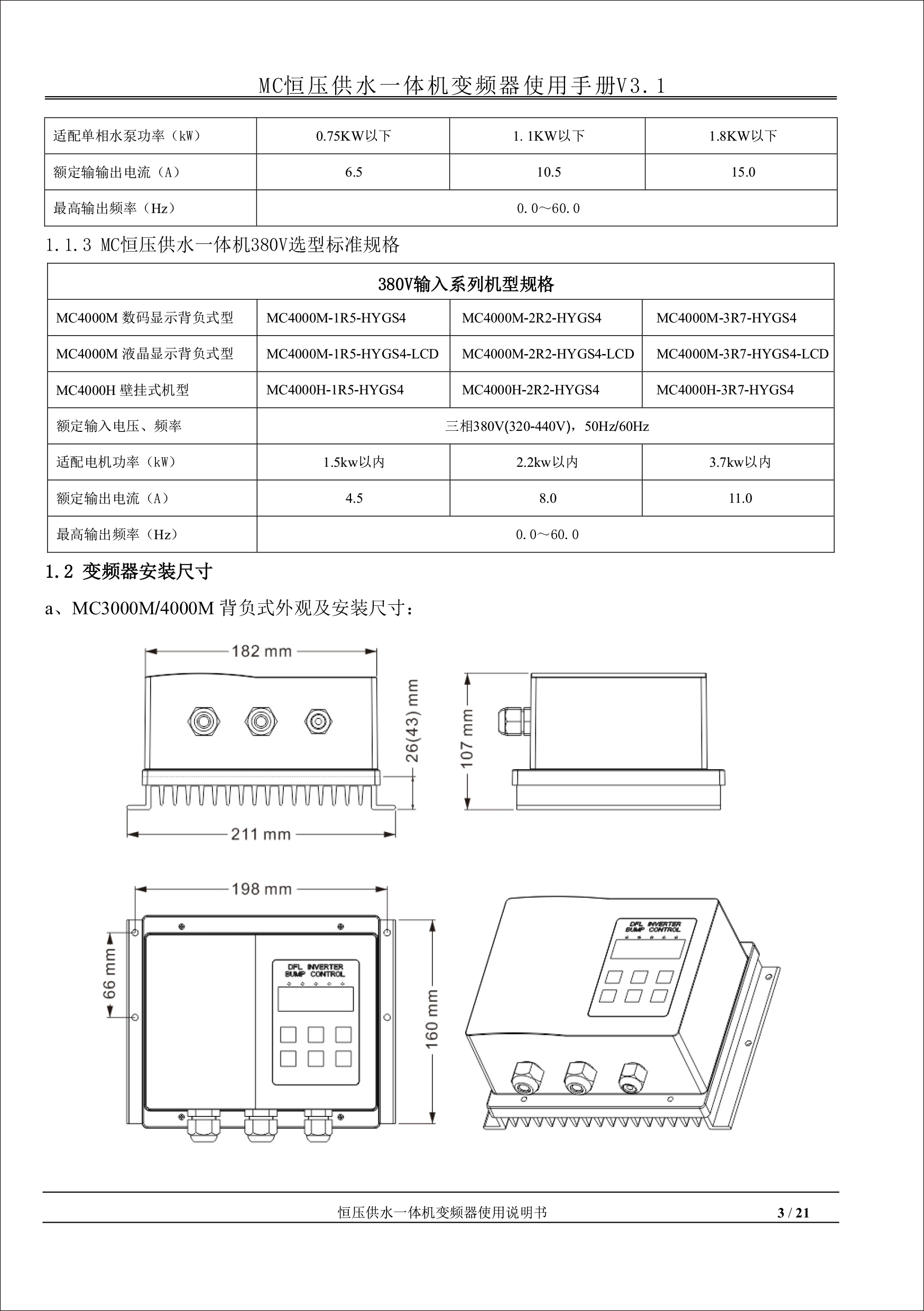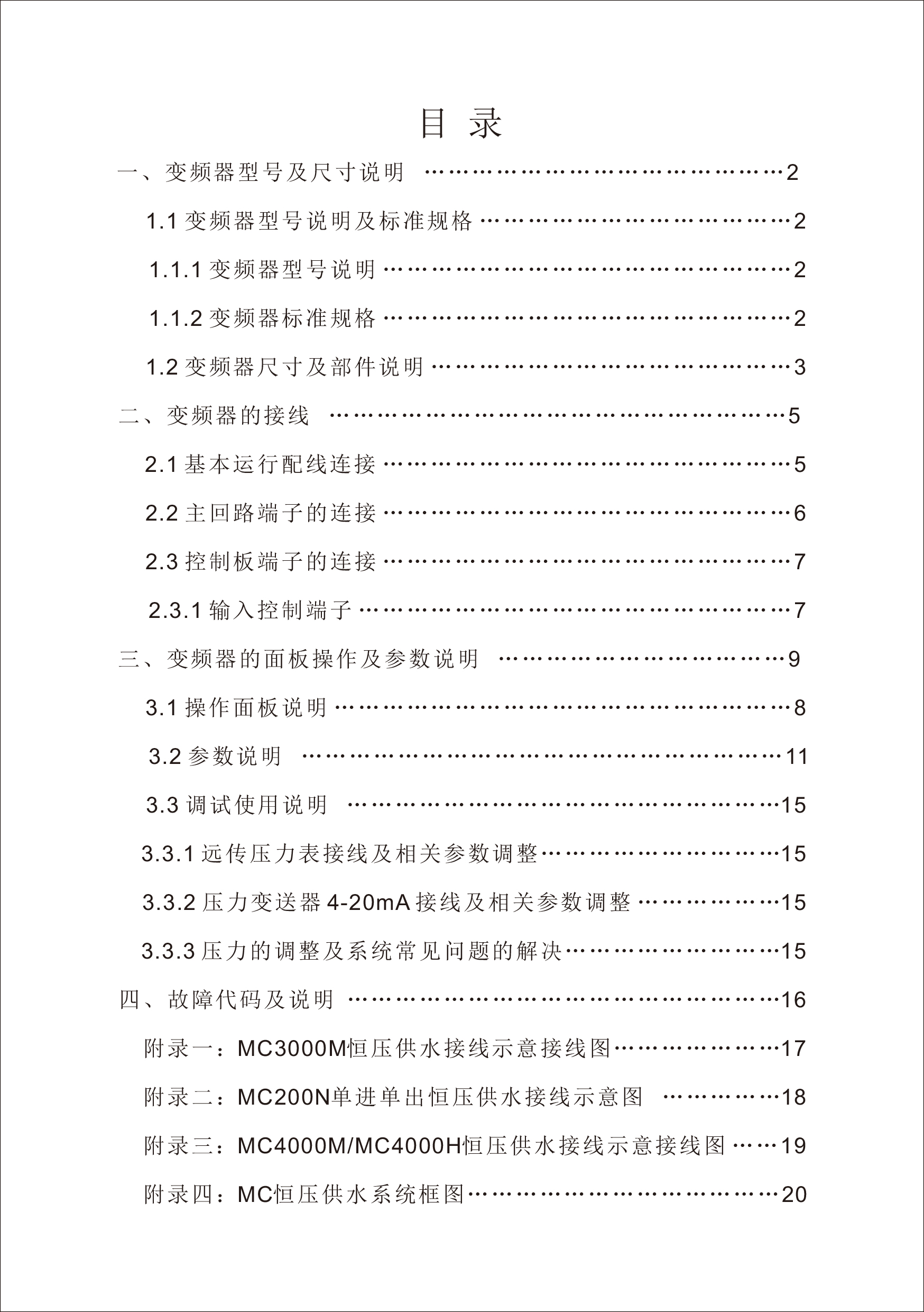 MC恒壓供水一體機(jī)變頻器使用手冊(cè)V31-181205