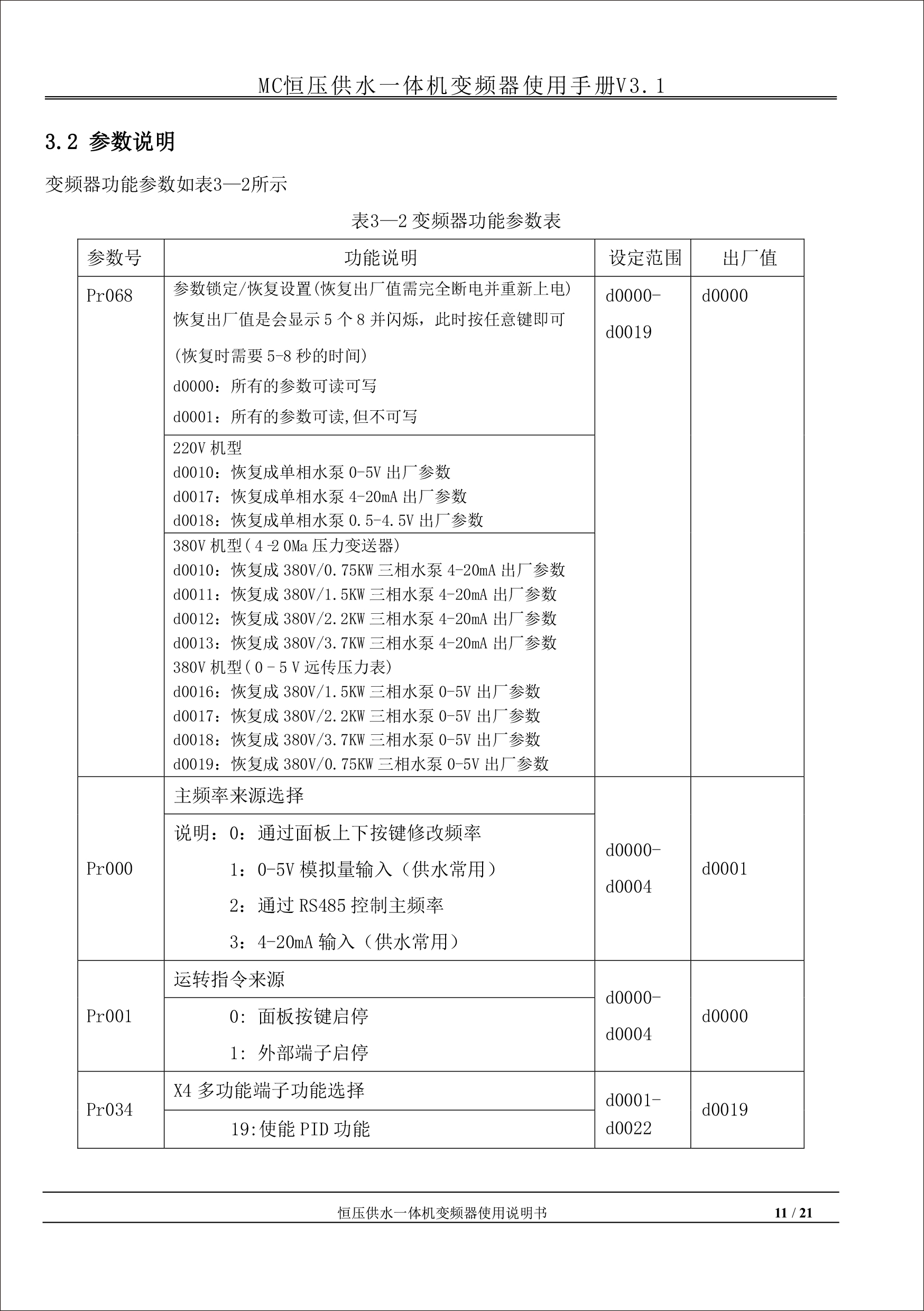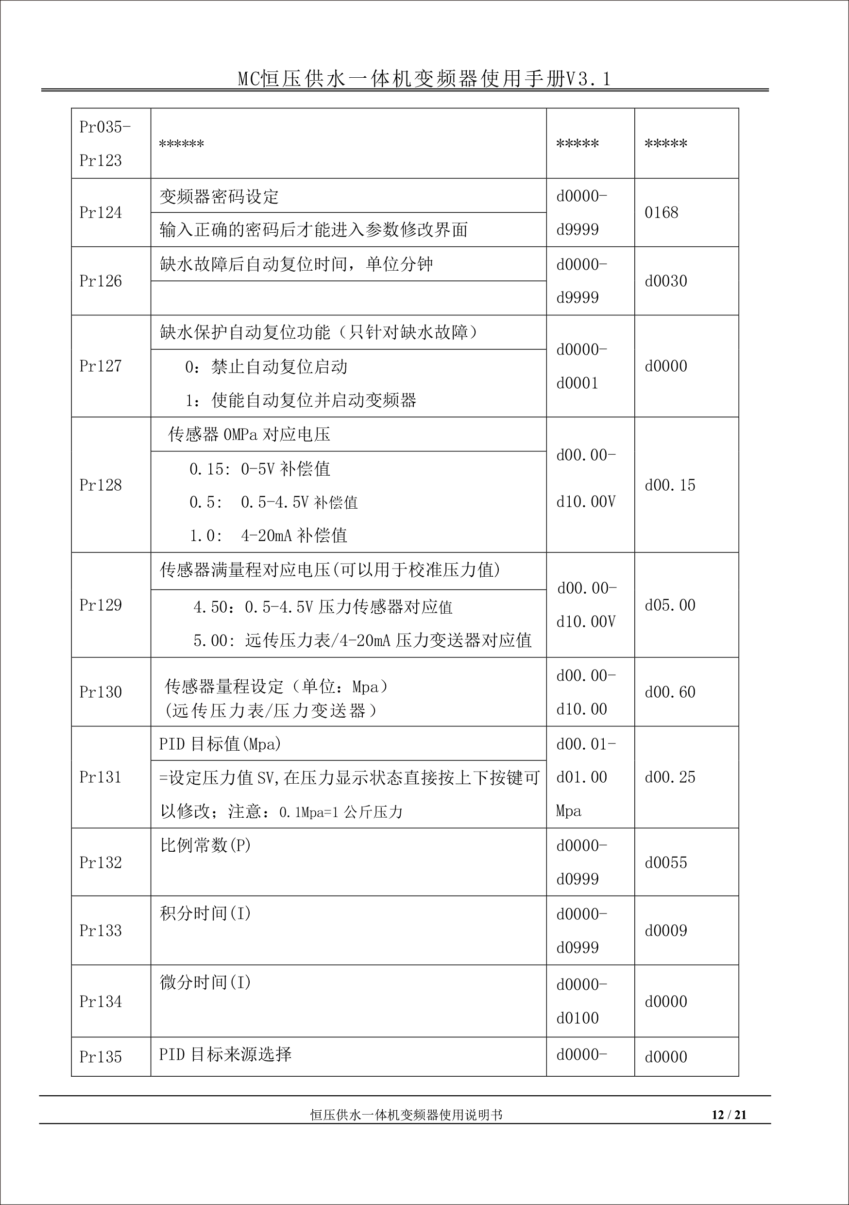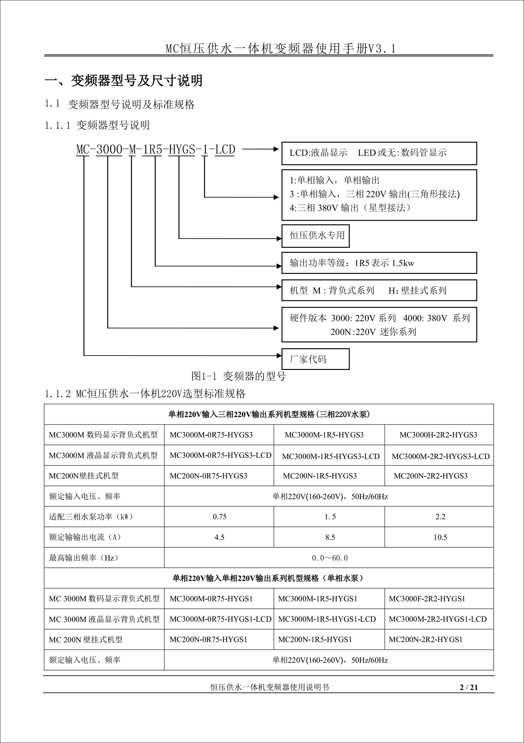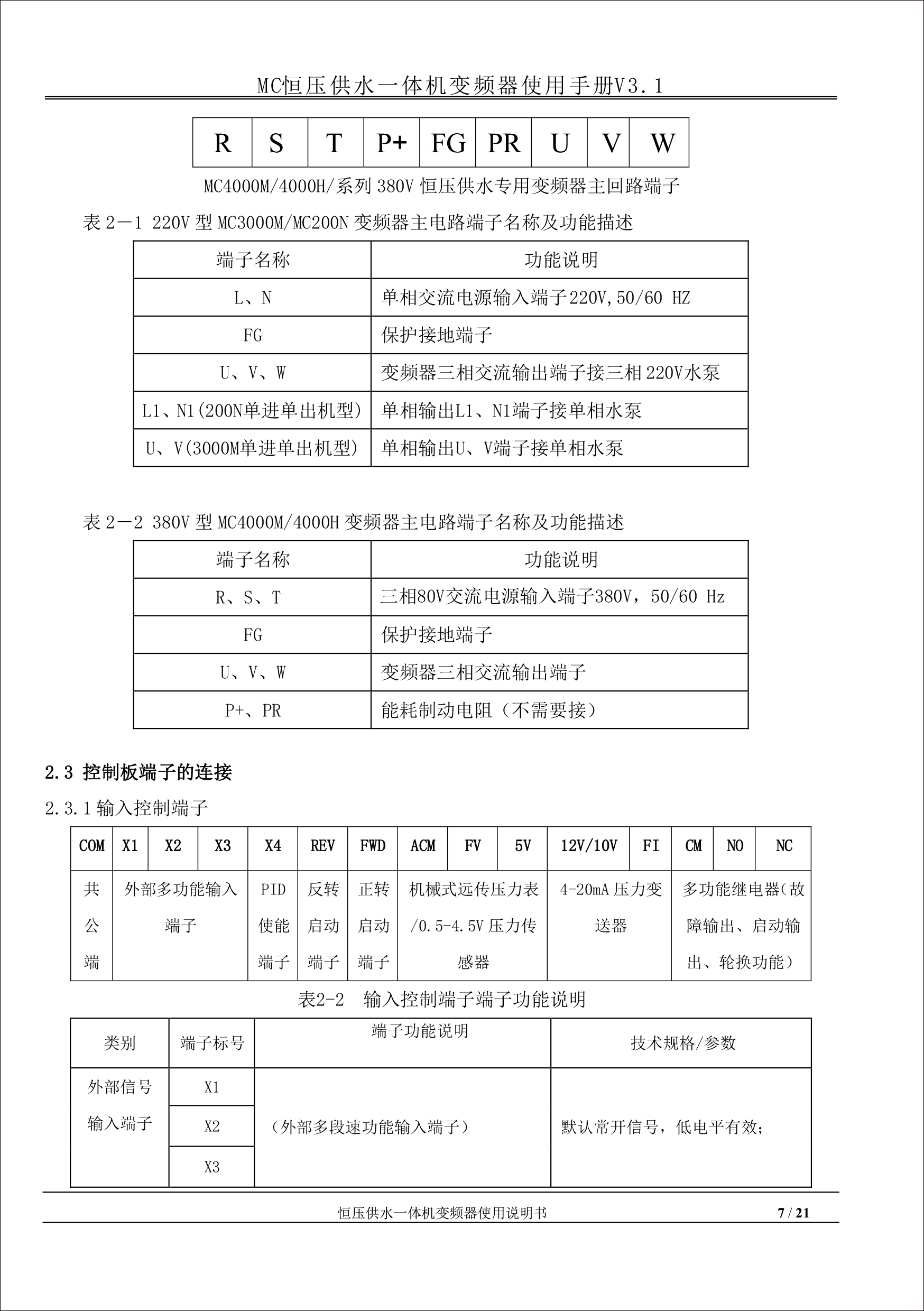 MC恒壓供水一體機(jī)變頻器使用手冊(cè)V31-181205